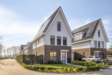 De oprit en de voortuin van nummer 5 heten je van harte welkom en leiden je naar de voordeur. Je komt vervolgens binnen in de hal met toegang tot het toilet en de trap naar de eerste verdieping. Vanaf de oprit vind je ook toegang tot de garage via de elektrische deur.